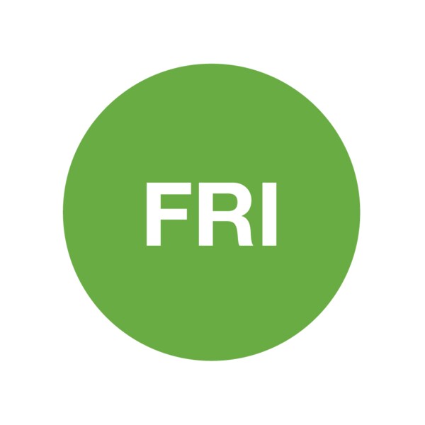 Dissolvable DaySpots - Friday 3/4" circle White w/Green