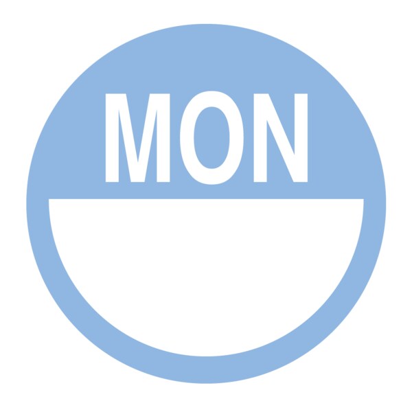Dissolvable DaySpots - Monday 2" circle White w/Blue