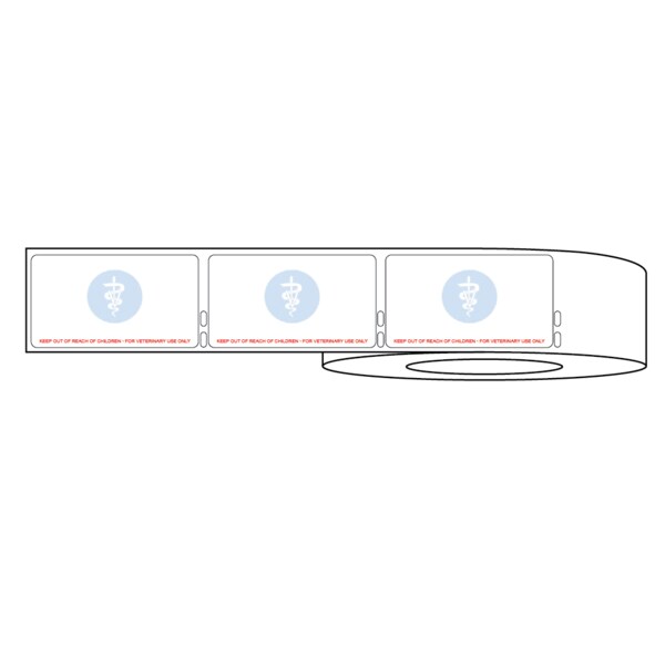 Dymo Label w/Catuceus & Warning 3-1/2" x 1-15/16" White w/Blue & Red, LA-DYM-1043