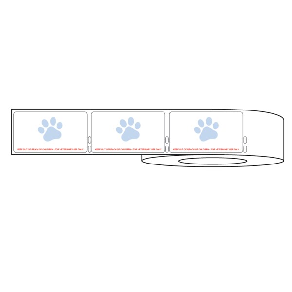 Dymo Label w/Paw Print & Warning 3-1/2"x1-15/16" White w/Blue& Red