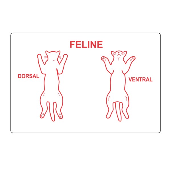 Feline Dorsal Ventral Label 2" x 3" White w/Red