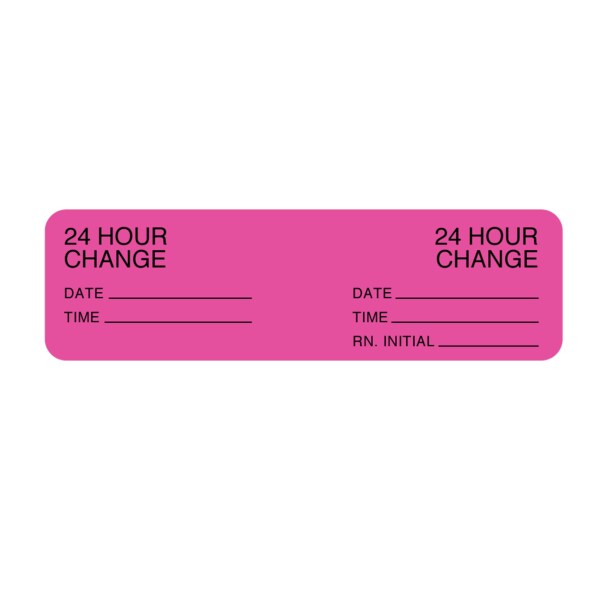 Hourly IV Tubing Label - I.V. Set 24 Hours Only7/8"x3" Flr Pink w/Blk