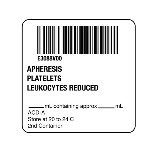 ISBT 128 Apheresis Platelets Irradiated Leukocyte 2" x 2"