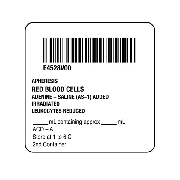ISBT 128 Apheresis Red Blood Cells 2" x 2"