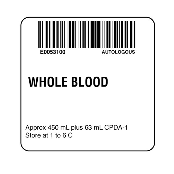 ISBT 128 Autologous Whole Blood 2" x 2"