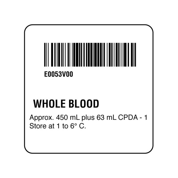ISBT 128 Whole Blood 2" x 2"