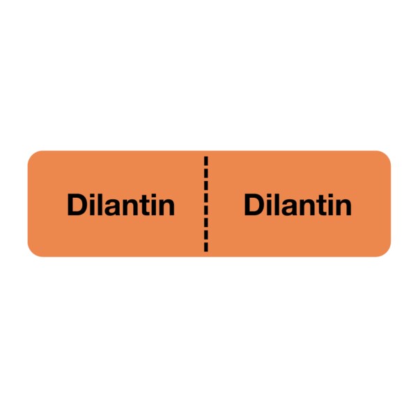 IV Drug Line Label - Dilantin/Dilantin 7/8" x 3" Flr Orange w/Black