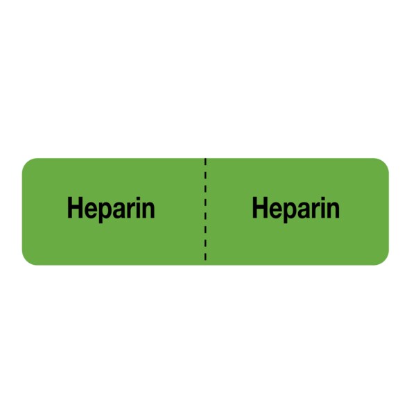 IV Drug Line Label - Heparin/Heparin 7/8" x 3" Green w/Black