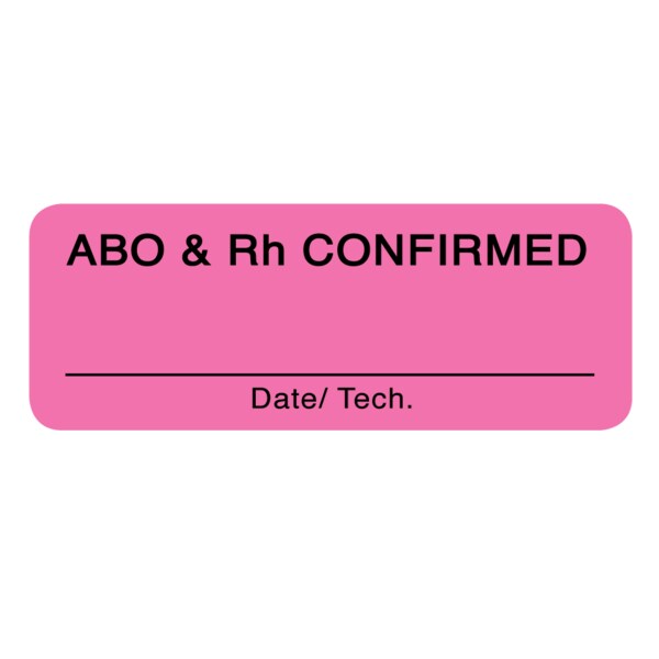 Label, ABO & RH Confirmed 3/4" x 2" Flr Pink w/Black