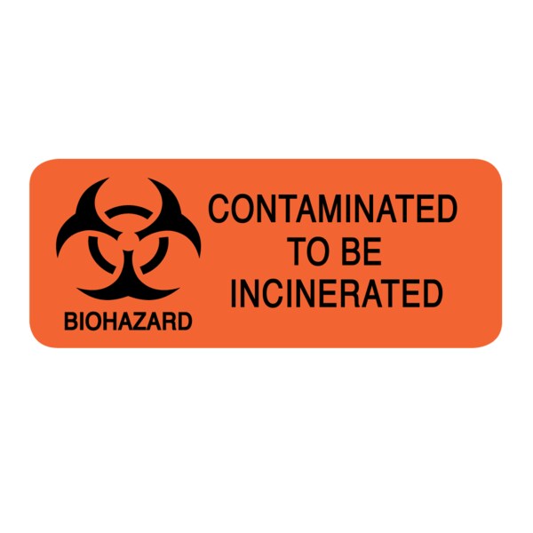 Label, Biohazard Contaminated To Be Incinerated 1" x 2-1/4"