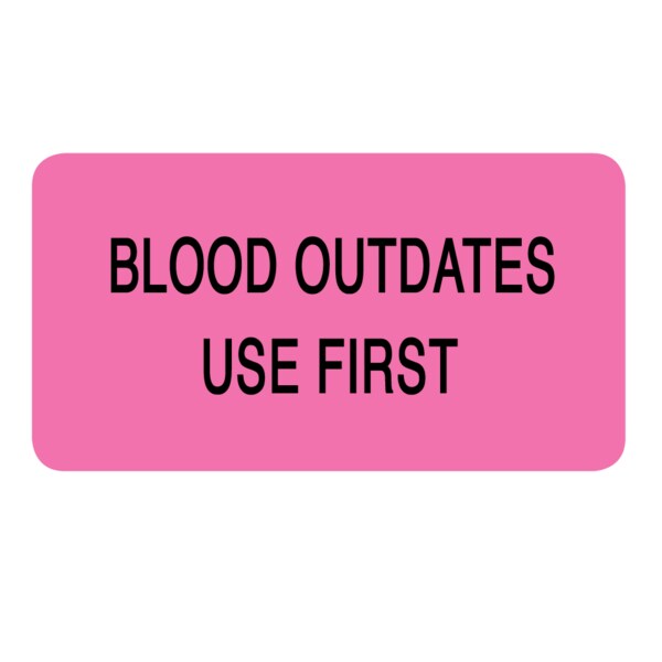 Label, Blood Outdates Use First 7/8" x 1-5/8" Flr Pink w/Black