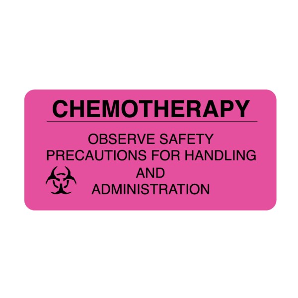 Label, Chemotherapy Observe Safety 1-7/16" x 3" Flr Pink w/Black