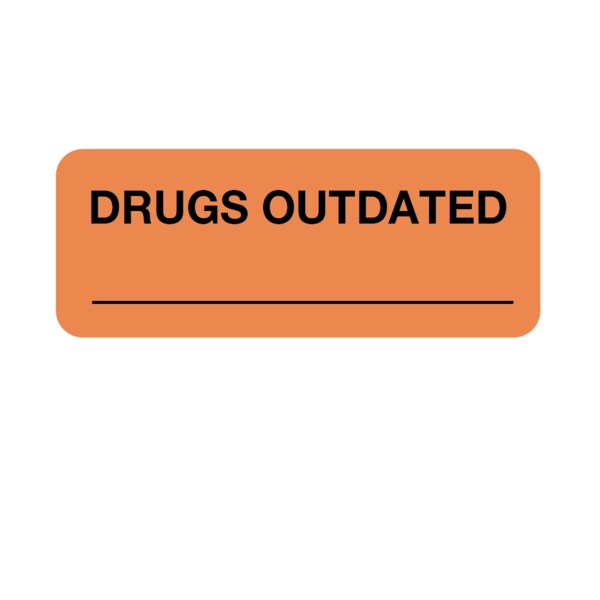Label, Drugs Outdated 7/8" x 2-1/4" Flr Orange w/Black