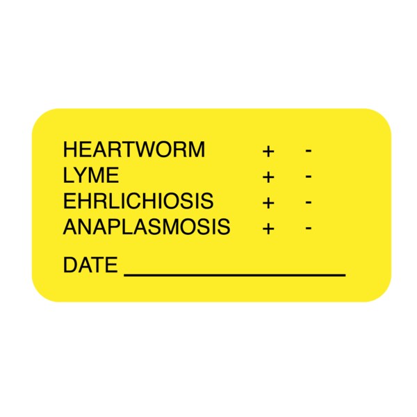 Label, Heartworm/Lyme Labels 1-5/8" x 7/8" Yellow w/Black