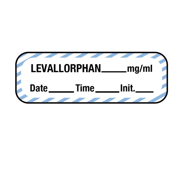 Label, Levallorphan 1/2" x 1-1/2" White w/Blue Stripes & Black