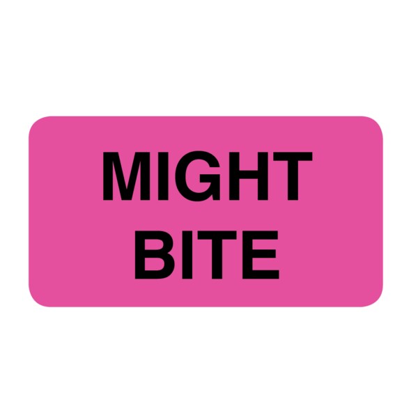 Label, Might Bite 7/8" x 1-5/8" Flr Pink w/Black