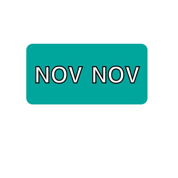 Label, Monthly Tab November 3/4" x 1-1/2" White w/Aqua & Black Reverse