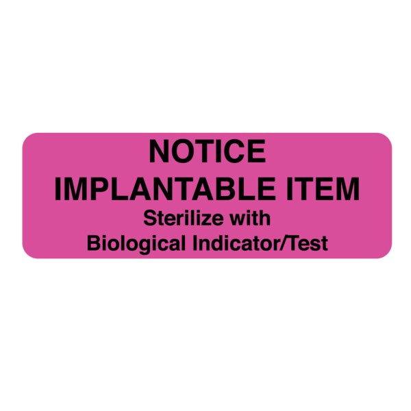 Label, "Notice Implantable Item" 1" x 2-15/16" Flr Pink w/Black