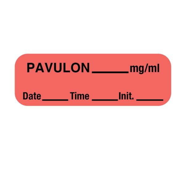 Label, Pavulon 1/2" x 1-1/2" Flr Red w/Black