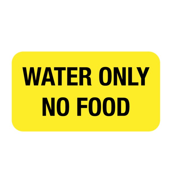 Label, Water Only No Food 7/8" x 1-5/8" Yellow w/Black