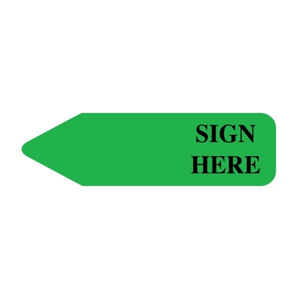 Labeling Flag - Imprinted - Sign Here - Green - 9/16" x 2"