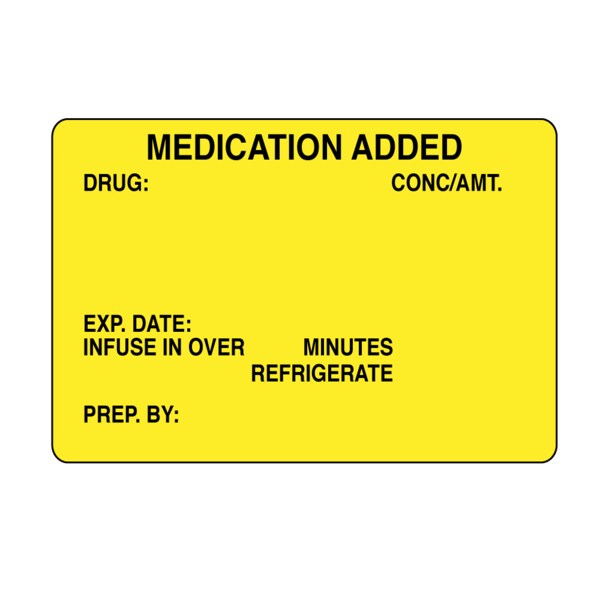 Medicatn Added Drug, Conc/Amt, Exp Date, Infuse2-7/16"x4" Ylw w/Black
