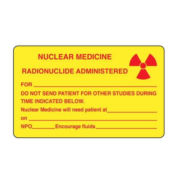 Nuclear Medicine Labels -Radionuclide 2-7/16" x 4" Yellow w/Rubine Red