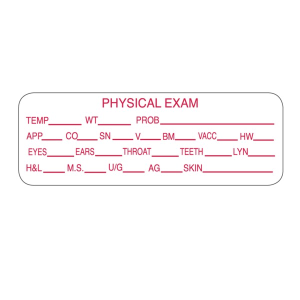 Physical Exam Label 7/8" x 2-1/2" White w/Red
