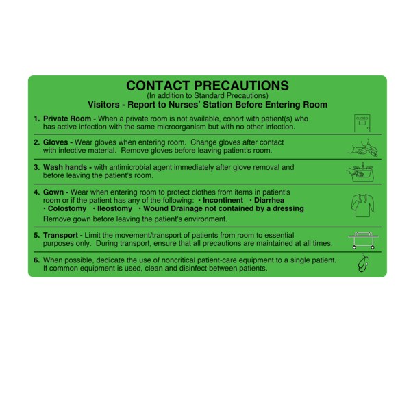 Precaution Labels - Contact Precaution 4-1/2" x 8" Flr Green w/Black