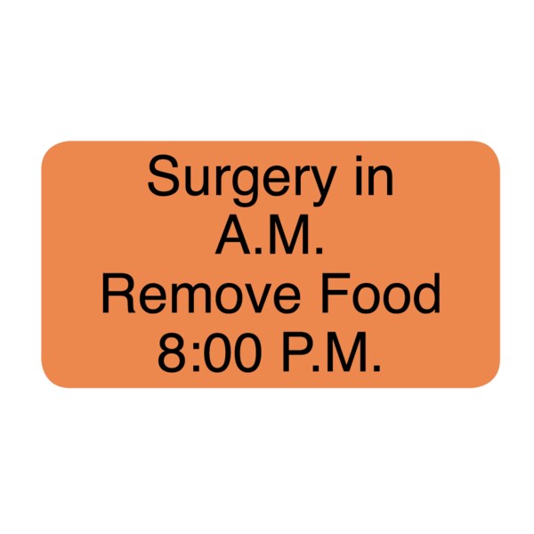 Surgery in A.M. Remove Food 8:00 P.M. 7/8" x 1-5/8" Flr Orange w/Black