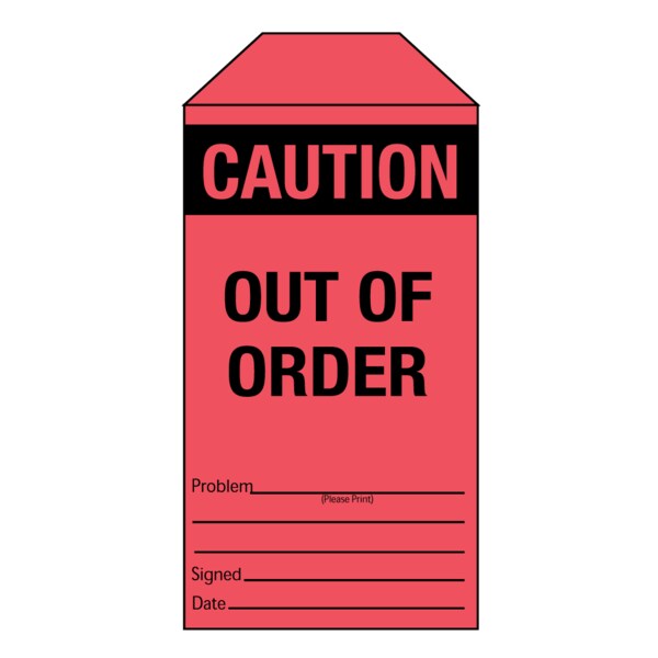 Tag, "Caution Out of Order" 6-1/4" x 3-1/8" Red w/Black