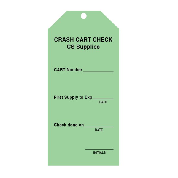Tag, "Crash Cart Check" 6-1/4" x 2-7/8" Green w/Black