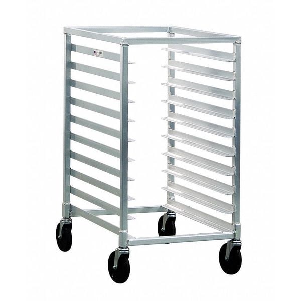 Bun Pan Rack, Nesting No, Load Capacity 500 lb, Overall Height 38 in, Brake No, Overall Width 20 3/8 in, Product Type Pan Rack, Caster Maximum Temperature Rating 130 Degrees F, Caster Type (4) Swivel, Color Silver, Depth 26 in, Distance Between Shelves 3 in, Number of Slots 10, Includes Top No, Material Aluminum, Compatible Sheet Pan Size Full Size, Half Size, Compatible Pan/Tray Dimensions 13 x 18 in, 14 x 18 in, 18 x 26 in, NSF Certified Yes, Size Half Size