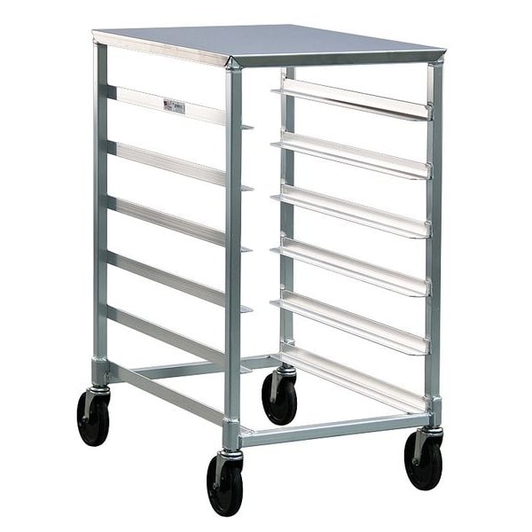 Bun Pan Rack, Nesting No, Load Capacity 500 lb, Overall Height 38 in, Brake No, Overall Width 20 3/8 in, Product Type Pan Rack, Caster Maximum Temperature Rating 130 Degrees F, Caster Type (4) Swivel, Color Silver, Depth 26 in, Distance Between Shelves 5 in, Number of Slots 6, Includes Top Yes, Top Material Stainless Steel, Material Aluminum, Compatible Sheet Pan Size Full Size, Half Size, Compatible Pan/Tray Dimensions 13 x 18 in, 14 x 18 in, 18 x 26 in, NSF Certified Yes, Size Half Size