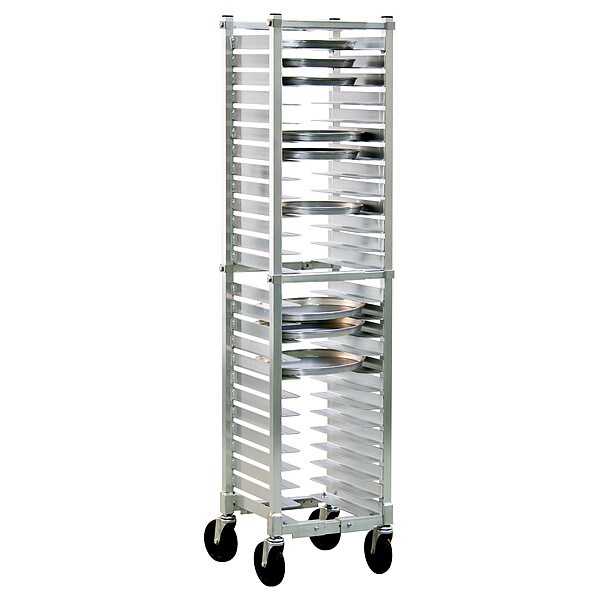 Adjustable Pizza Pan Rack, Nesting No, Overall Height 62 1/8 in, Brake No, Product Type Adjustable Pizza Pan Rack, Caster Type (4) Swivel Stem, Depth 13 3/8 in, Distance Between Shelves 2 in, Number of Slots 26, Includes Top No, Compatible Pan/Tray Dimensions 10 to 16 in, NSF Certified No