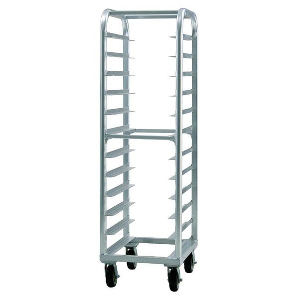 Bun Pan Rack, Nesting No, Load Capacity 1,000 lb, Overall Height 73 in, Brake No, Overall Width 21 1/2 in, Product Type Bun Pan Rack, Caster Maximum Temperature Rating 140 Degrees F, Caster Type (4) Swivel Plate, Color Silver, Depth 26 in, Distance Between Shelves 5 in, Number of Slots 12, Includes Top No, Material Aluminum, Compatible Sheet Pan Size Full Size, Half Size, Compatible Pan/Tray Dimensions 13 x 18 in, 14 x 18 in, 18 x 26 in, NSF Certified Yes, Size Full Size