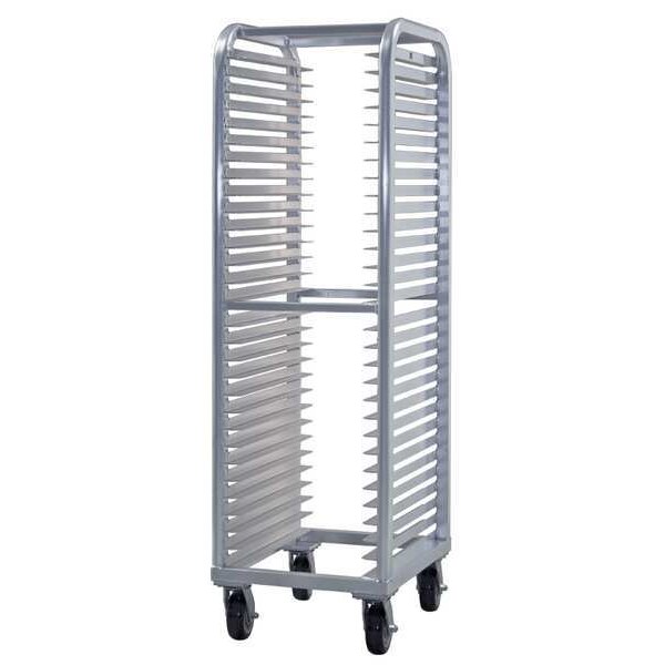 Bun Pan Rack, Nesting No, Load Capacity 1,000 lb, Overall Height 73 in, Brake No, Overall Width 21 1/2 in, Product Type Bun Pan Rack, Caster Maximum Temperature Rating 140 Degrees F, Caster Type (4) Swivel Plate, Color Silver, Depth 26 in, Distance Between Shelves 2 in, Number of Slots 30, Includes Top No, Material Aluminum, Compatible Sheet Pan Size Full Size, Half Size, Compatible Pan/Tray Dimensions 13 x 18 in, 14 x 18 in, 18 x 26 in, NSF Certified Yes, Size Full Size