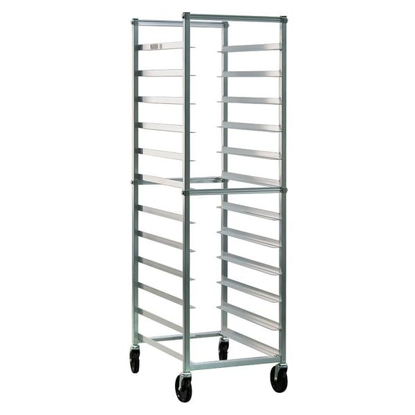Bun Pan Rack, Nesting No, Load Capacity 500 lb, Overall Height 69 in, Brake No, Overall Width 20 3/8 in, Product Type Standard Knocked Down Sheet Pan Rack, Caster Maximum Temperature Rating 130 Degrees F, Caster Type (4) Swivel Stem, Color Silver, Depth 26 in, Distance Between Shelves 5 in, Number of Slots 12, Includes Top No, Material Aluminum, Compatible Sheet Pan Size Full Size, Half Size, Compatible Pan/Tray Dimensions 13 x 18 in, 14 x 18 in, 18 x 26 in, NSF Certified Yes, Size Full Size