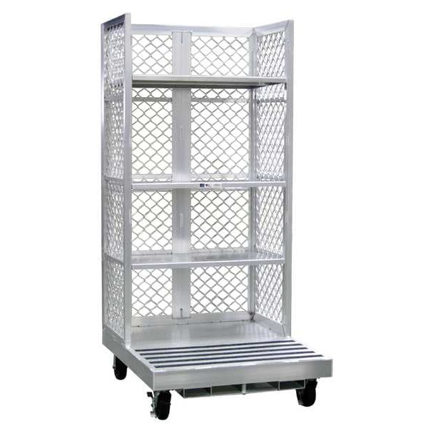 Forklift Work Platform, Load Capacity - Maximum 1,000 lb, Tread Type Solid, Assembly Status Assembled, Platform Length 48 in, Platform Width 40 in, Handrail Height 45 in, Overall Height 88 in, Number of Guard Rails 3, Caster Configuration (2) Rigid, (2) Swivel with Brake, Caster Dia. 6 in, Color Silver, Finish Unfinished, Includes (3) Shelves, Manufacturers Warranty Length 5 yr