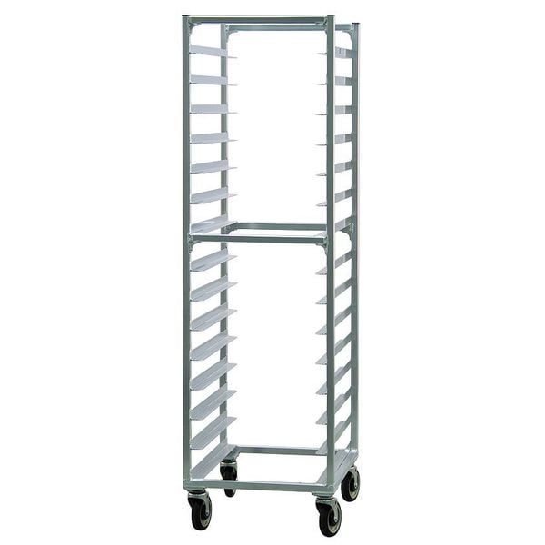 Bun Pan Rack, Nesting No, Load Capacity 700 lb, Overall Height 69 3/4 in, Brake No, Overall Width 20 3/8 in, Product Type Pan Rack, Caster Maximum Temperature Rating 180 Degrees F, Caster Type (4) Swivel Plate, Color Silver, Depth 26 in, Distance Between Shelves 4 in, Number of Slots 15, Includes Top No, Material Aluminum, Compatible Sheet Pan Size Full Size, Half Size, Compatible Pan/Tray Dimensions 13 x 18 in, 14 x 18 in, 18 x 26 in, NSF Certified Yes, Size Full Size