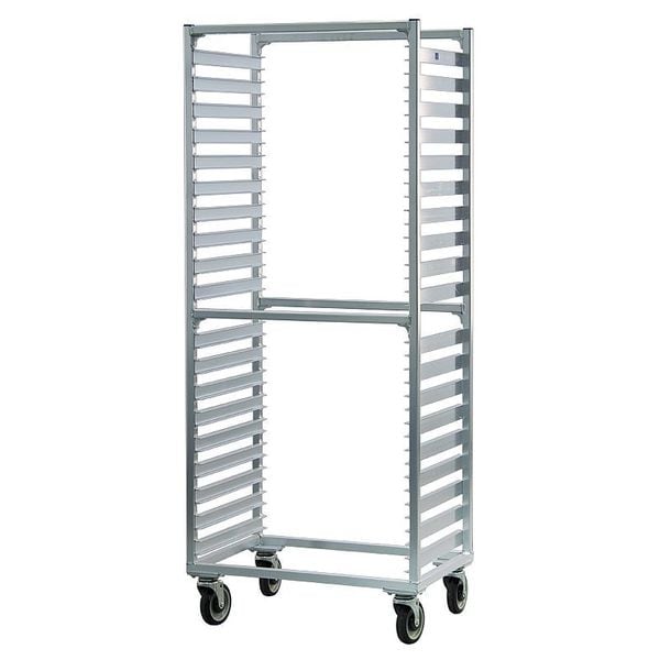 Bun Pan Rack, Nesting No, Load Capacity 700 lb, Overall Height 69 3/4 in, Brake No, Overall Width 28 3/8 in, Product Type Pan Rack, Caster Maximum Temperature Rating 180 Degrees F, Caster Type (4) Swivel Plate, Color Silver, Depth 19 in, Distance Between Shelves 1 1/2 in, Number of Slots 38, Includes Top No, Material Aluminum, Compatible Sheet Pan Size Full Size, Half Size, Compatible Pan/Tray Dimensions 13 x 18 in, 14 x 18 in, 18 x 26 in, NSF Certified Yes, Size Full Size