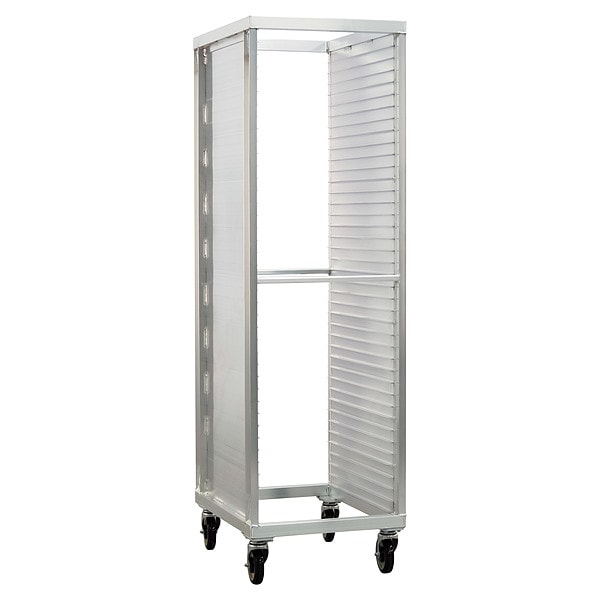 Heavy Duty Enclosed Transport Pan Rack, Nesting No, Overall Height 69 7/8 in, Brake No, Overall Width 20 3/8 in, Product Type Heavy Duty Enclosed Transport Cabinet, Caster Type (4) Swivel, Depth 26 1/2 in, Distance Between Shelves 1 1/2 in, Enclosed/Open/Partially Enclosed Enclosed, Number of Slots 39, Includes Top Yes, Top Material Aluminum, Material Aluminum, Compatible Sheet Pan Size Full Size, Half Size, Compatible Pan/Tray Dimensions 13 x 18 in, 14 x 18 in, 18 x 26 in, NSF Certified Yes