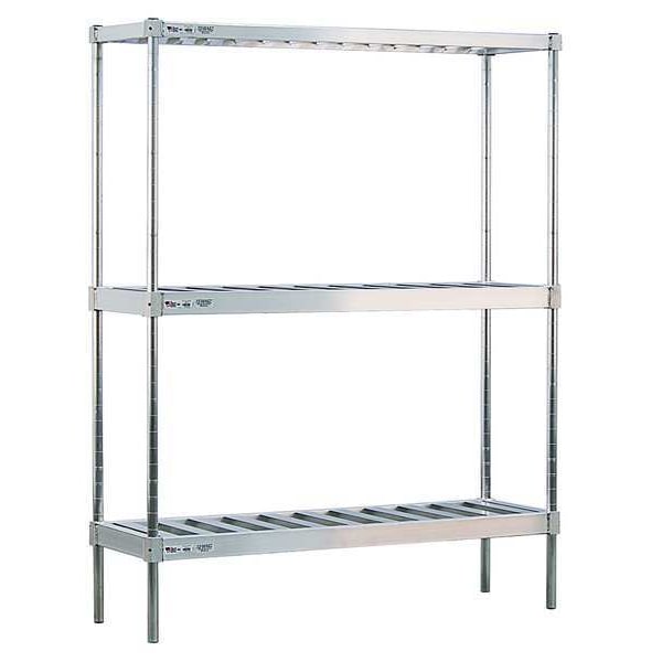 Keg Shelving Unit, Caster Type Not Applicable, Overall Height 76 in, Overall Width 80 in, Overall Depth 18 in, For Use With (26) 1/6 Barrels, (8) 1/2 Barrels, Finish Smooth, Includes (4) Posts, Hex Key, Plastic Caps, Set Screws, Product Type Keg Shelving Unit, Capacity per Shelf 660 lb, Color Soft Gray, Load Capacity 1,980 lb, Mobile/Stationary Stationary, Number of Shelves 3, NSF Certified Yes, Frame Material Aluminum, Shelf Depth 18 in, Shelf Material Aluminum