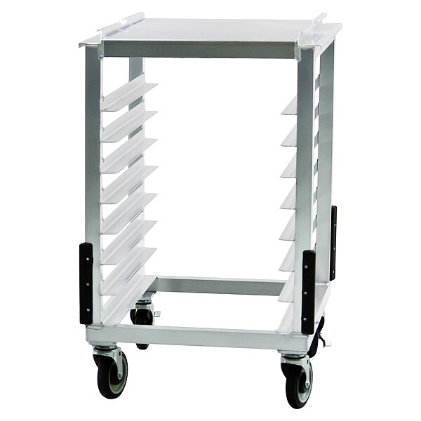 Slicer/Mixer Stand, Nesting No, Overall Height 37 in, Brake Yes, Overall Width 23 1/4 in, Product Type Slicer/Mixer Stand, Caster Type (4) Swivel Plate, Depth 26 in, Distance Between Shelves 3 in, Number of Slots 8, Includes Top Yes, Top Material Aluminum, Material Aluminum, Compatible Sheet Pan Size Full Size, Half Size, Compatible Pan/Tray Dimensions 13 x 18 in, 14 x 18 in, 18 x 26 in, NSF Certified Yes, Size Half Size