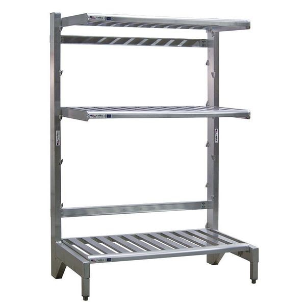 Cantilever Rack, Load Capacity per Shelf 300 lb, Aluminum, Number of Shelves 3, Overall Depth 27 in, Overall Height 72 in, Overall Width 36 in, Whole Unit Load Capacity 900 lb, Shelving Configuration Standalone, Shelf Style T-Bar, Shelf Gauge 10 ga, Shelf Length 24 in, Shelf Lip Type No Lip, Base Length 36 In., Column Gauge 11 ga, Number of Usable Sides 1