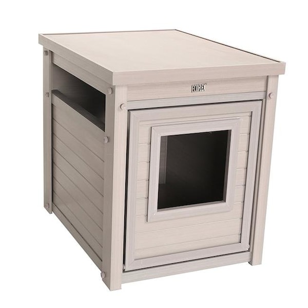 Mistakes are simply wiped away. Front door latches securely and can't be accidentally opened pulls down for easy removal of the litter pan for cleaning. Easy 5 minute - no tool - assembly. Very easy to keep clean. Since they are AllProof, they are resistant to any and all natural causes of deterioration. EcoFLEX material so scratches are less likely to show. Can actually be painted - if necessary - to co-ordinate with your other furnishings. Co-ordinates in color and style with the growing number of items in the New Age Pet the Habitat n Home collection. Sized to fit most small and medium litter pans.