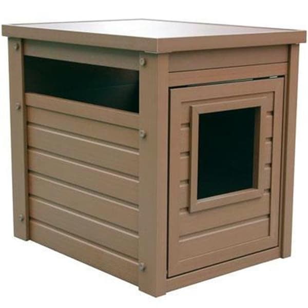 The ideal answer to what to do with your unsightly litter box. Just tuck it inside the New Age Habitat 'n Home Litter Loo and its conveniently out of sight. Made from ecoFriendly ecoFLEX, the Litter Loo will last for years. With its ultra low levels of absorbency, accidents can be conveniently wiped up with no long term odor problems. Easy - no tool - assembly in minutes. One size, New, Russet color