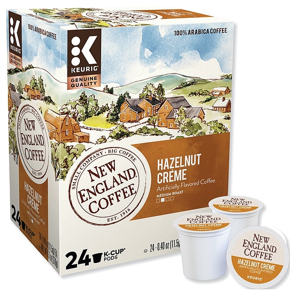 Coffee, Net Weight 9.6 oz, Beverage Package Style Pod, Coffee Roast/Tea Type Medium, Package Weight 0.4 oz, Sub-Brand New England(R) Coffee, Beverage Flavor Hazelnut Creme, Product Type Coffee, Caffeine Type Caffeinated, Beverage Format Ground, Package Quantity 24