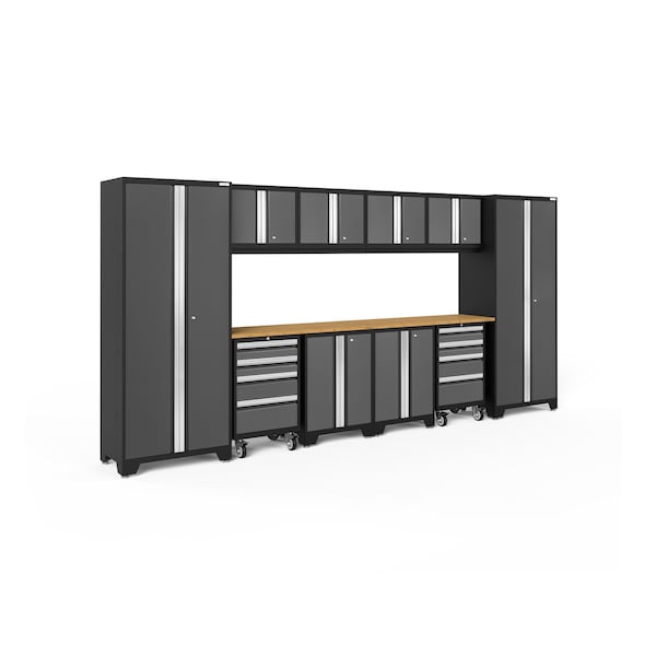Bold Series 12 Piece Garage Cabinet Set with Bamboo Top, Gray