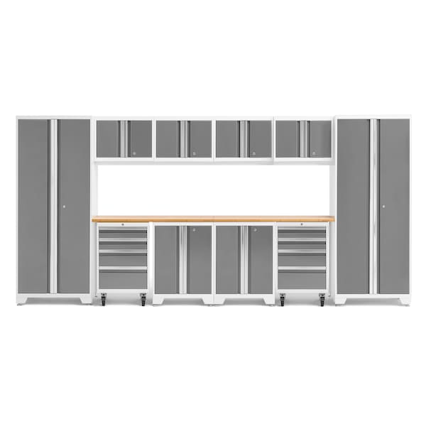 Bold Series 12 Piece Garage Cabinet Set with Bamboo Top, White